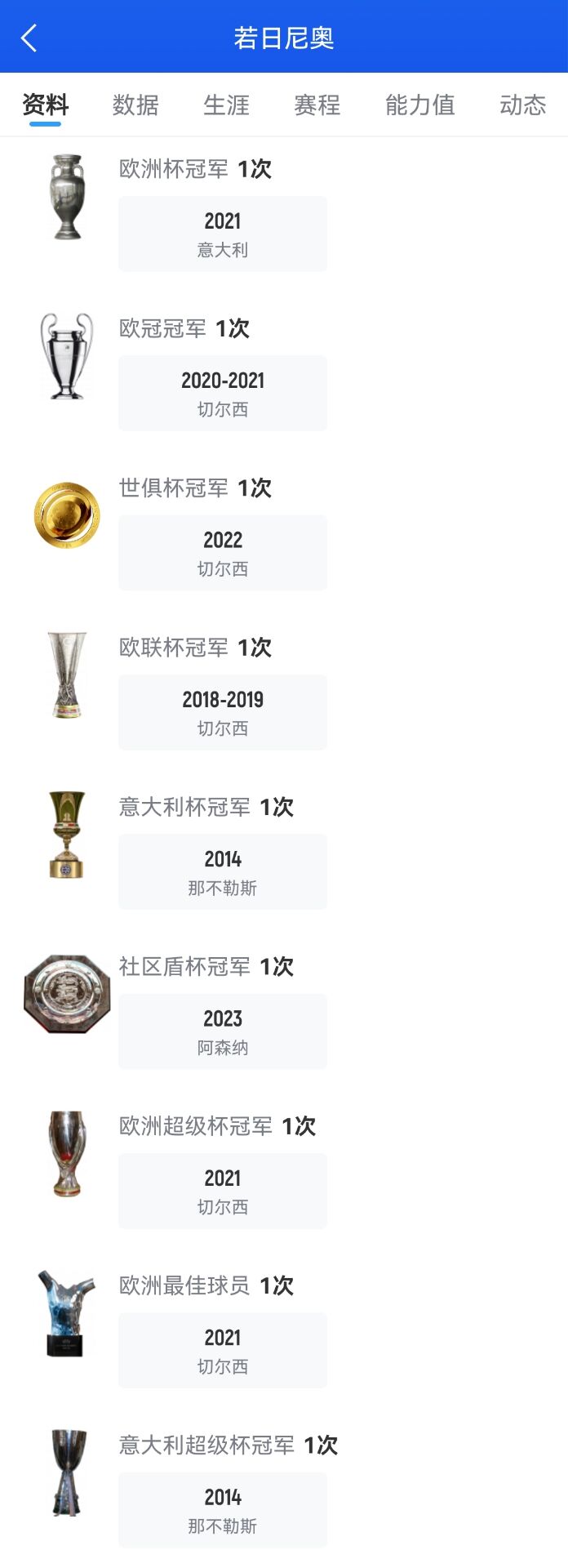 足球比分网11月30日讯 今天早晨进行的南美解放者杯决赛中,弗拉门戈战胜帕尔梅拉斯,问鼎南美解放者杯冠军头衔。 而这也是33岁的意大利中场若日尼奥职业生涯的又一个重量级荣誉。今年夏天,若日尼奥与阿森纳提前解约,自由身加盟弗拉门戈,在这场解放者杯决赛中也是打满全场。 此前的职业生涯,若日尼奥曾获2021年欧洲杯冠军、2020/21赛季欧冠冠军、2022年世俱杯冠军、2018/19赛季欧联杯冠军等多项重要荣誉。