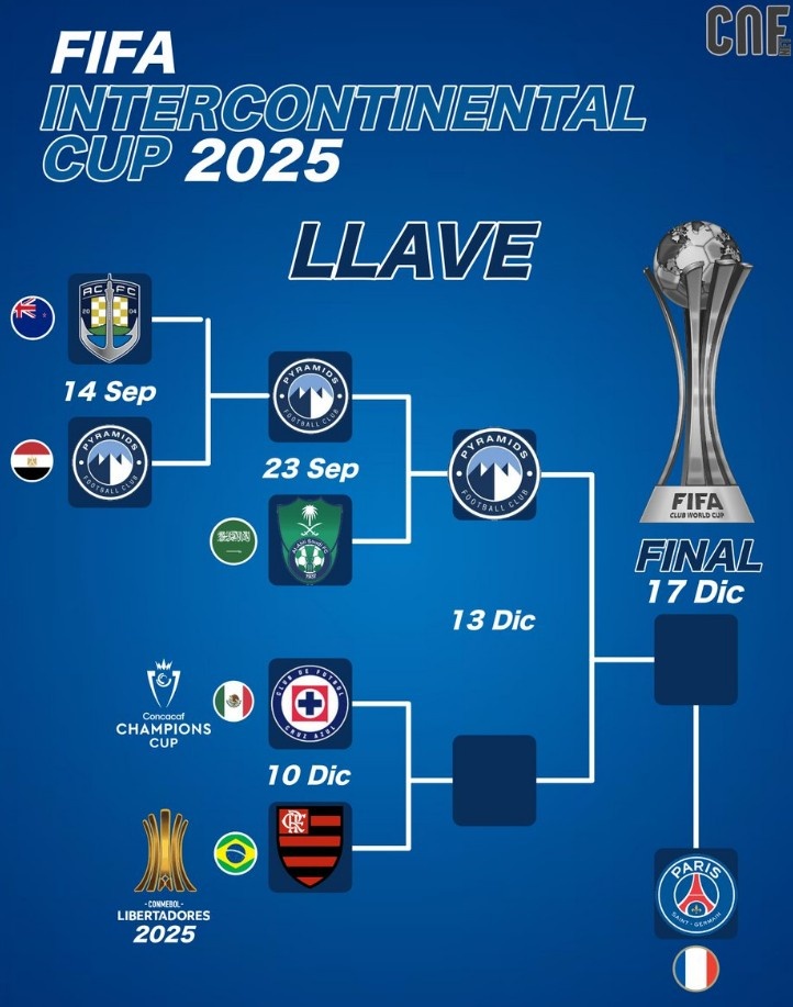 足球比分网11月30日讯 在南美解放者杯决赛,弗拉门戈1-0击败帕尔梅拉斯夺冠。 2025年洲际杯赛程随之公布,其中巴黎直接晋级决赛。弗拉门戈将代表南美洲足联出战,对阵墨西哥的蓝十字。两者间的胜者将对阵埃及的金字塔队,最终胜者将在12月17日与巴黎争夺冠军。 |