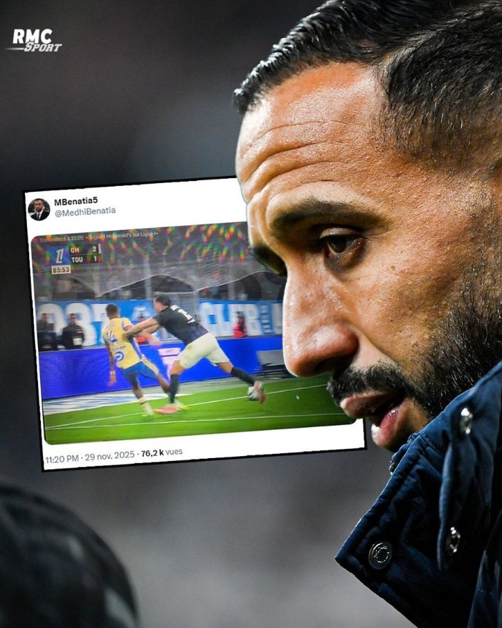 足球比分网11月30日讯 在本轮法甲,马赛2-2战平图卢兹。 本场比赛马赛在第92分钟遭遇绝平。在本场第86分钟,马赛球员派尚曾在对方禁区被对手明显推搡,但裁判并未做出表示,赛后马赛总监贝纳蒂亚在社媒晒出该视频截图表达对判罚的不满。 |