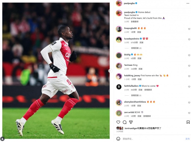 替补登场,博格巴社媒晒照:迎来主场首秀,为