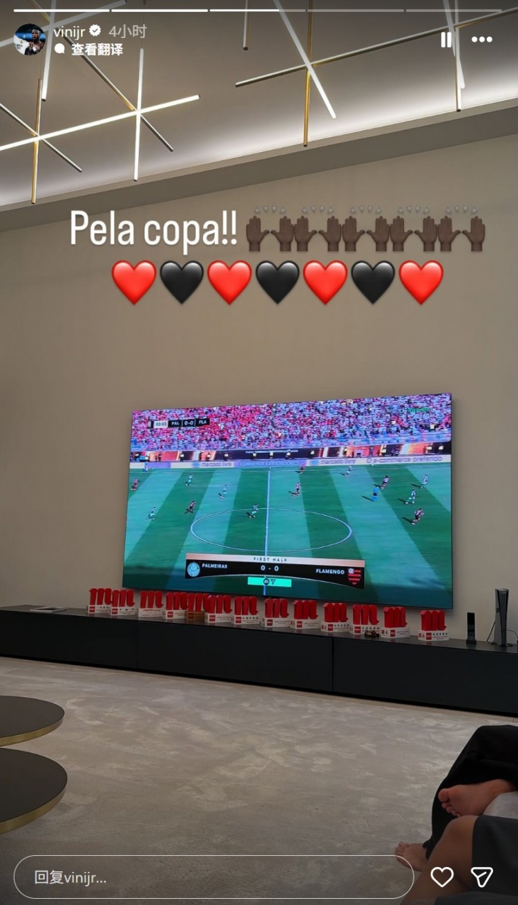 心系老东家弗拉门戈!维尼修斯晒家中观看解放