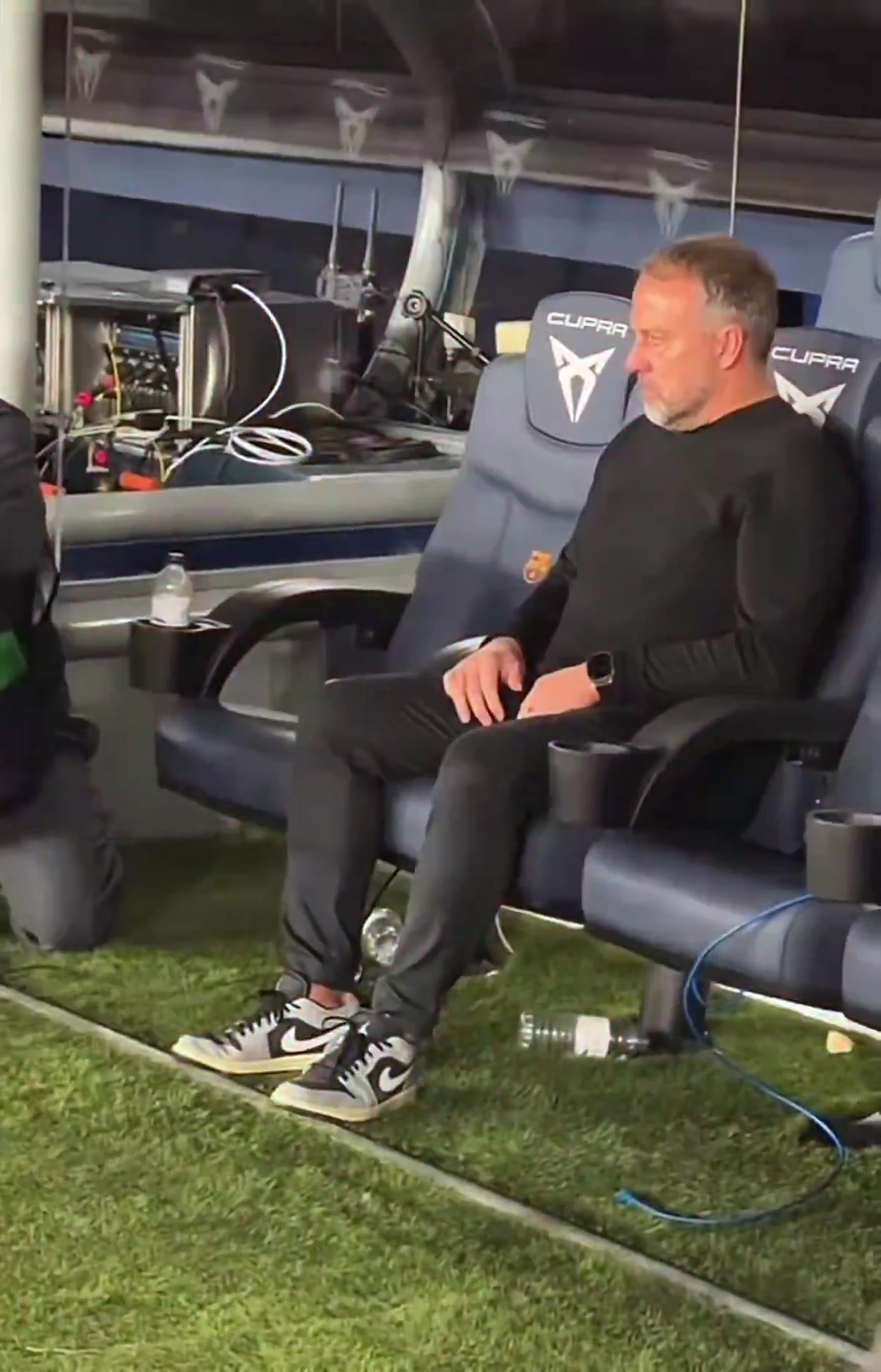 足球比分网11月30日讯 西甲第14轮,巴萨3-1战胜阿拉维斯。 尽管主场取胜,但巴萨主帅弗里克对球队本场比赛的表现似乎并不完全满意。终场哨响后,DAZN的转播镜头拍到弗里克一脸严肃地留坐在替补席上,与本场表现出色,被换下的拉菲尼亚交换着意见。交流过程中,弗里克神情严肃,几次摇头。