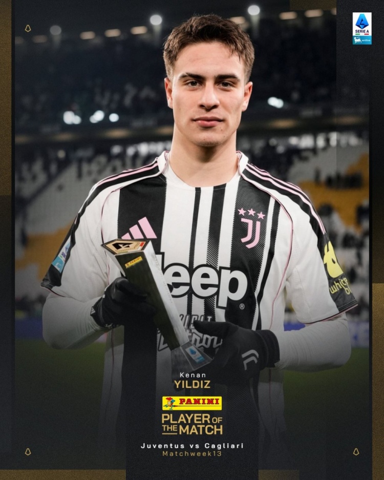 梅开二度!意甲官方:伊尔迪兹当选尤文vs卡利亚