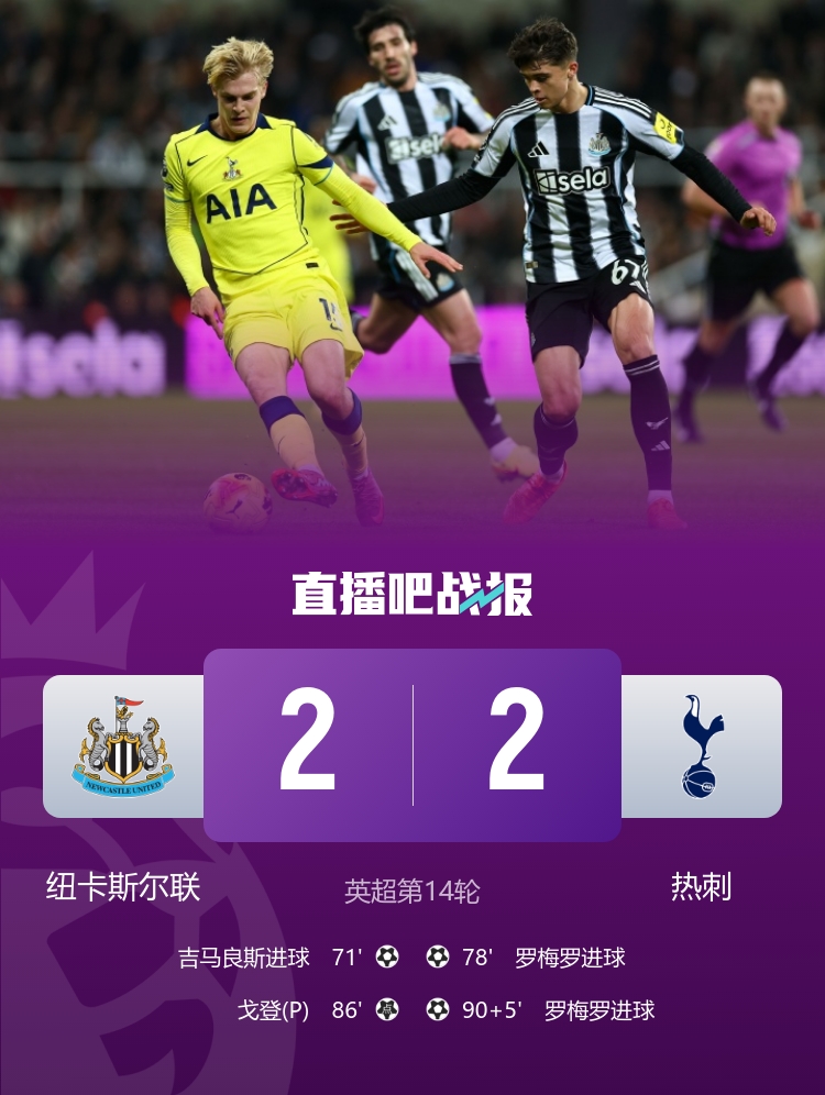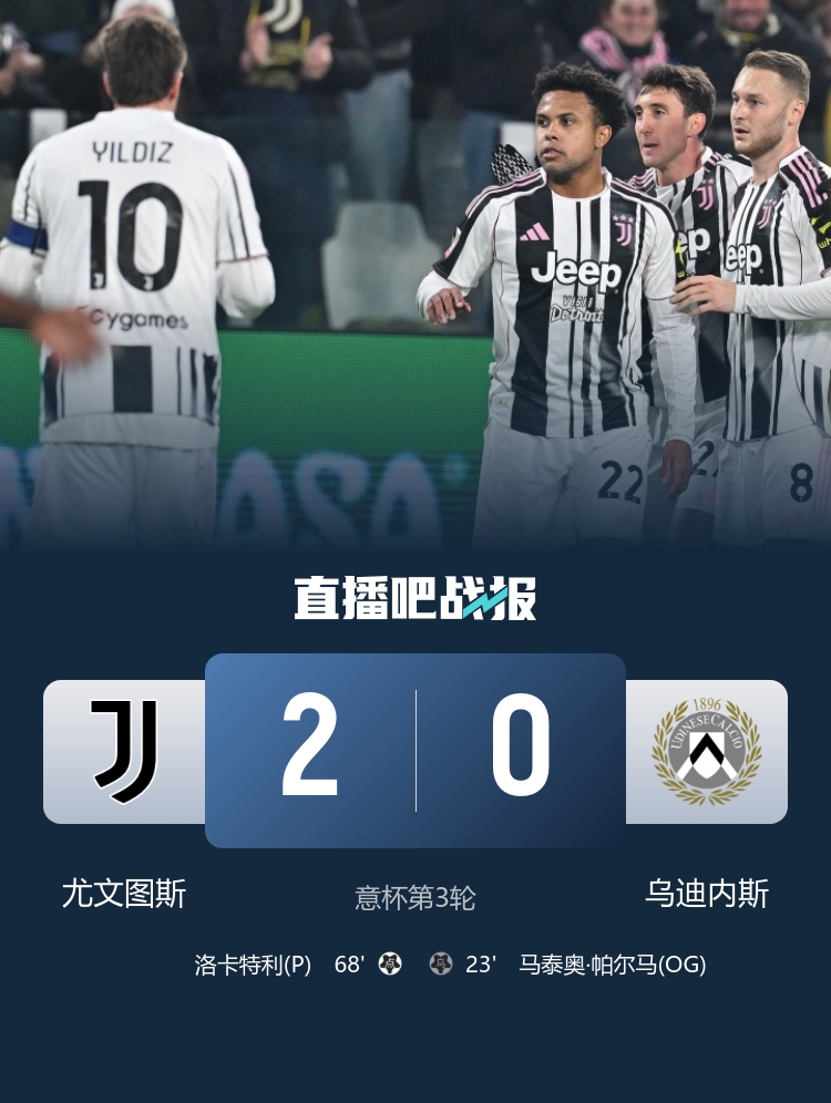罗梅罗双响+倒钩绝平,热刺2-2纽卡五轮不胜。 意杯-尤文2-0乌迪内斯晋级 麦肯尼造乌龙洛卡特利点射