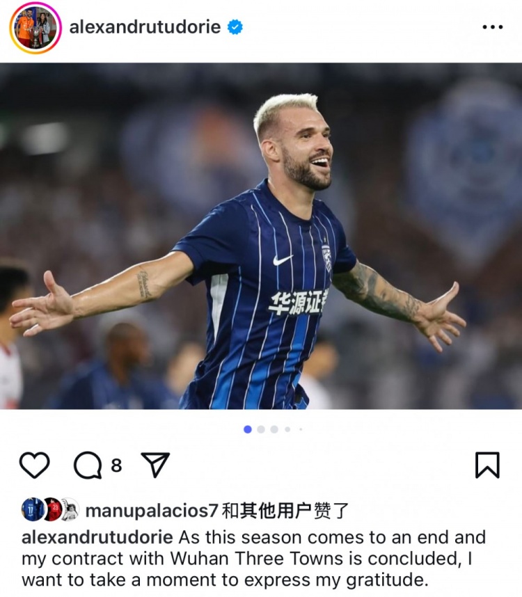 足球比分网12月1日讯 今天,武汉三镇外援图多列更新社媒,向武汉三镇俱乐部告别。 今年年初加盟武汉三镇的罗马尼亚外援图多列,本赛季共代表武汉三镇出战26场,贡献10个进球。他在社媒告别写道: 随着本赛季落下帷幕,我与武汉三镇的合同也已到期,此刻我想借此机会表达我的感激之情。感谢俱乐部的每一个人:队友、工作人员、教练们,尤其感谢我们共度的那些时光。感谢你们的支持、付出的热情,以及那些令人难忘的赛场氛围。我为我们并肩作战的每一场比赛、共同面对的每一次挑战感到骄傲。 武汉将永远是我职业生涯和人生中浓墨重彩的特殊篇章。新的征程即将开启,但我会满怀感恩,铭记在这里的一切经历。 |