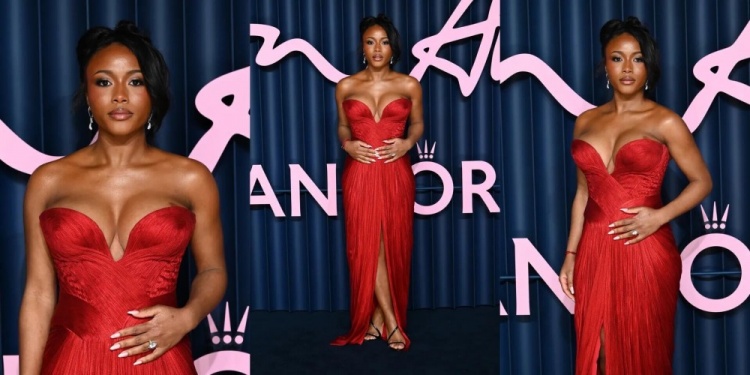 性感红裙,惊艳全场!萨卡未婚妻华丽造型出席