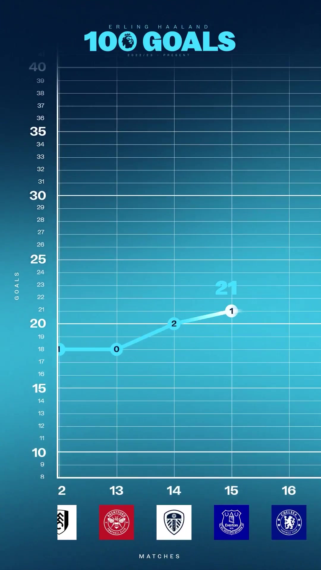 达成百球里程碑!曼城官方社媒晒哈兰德英超进
