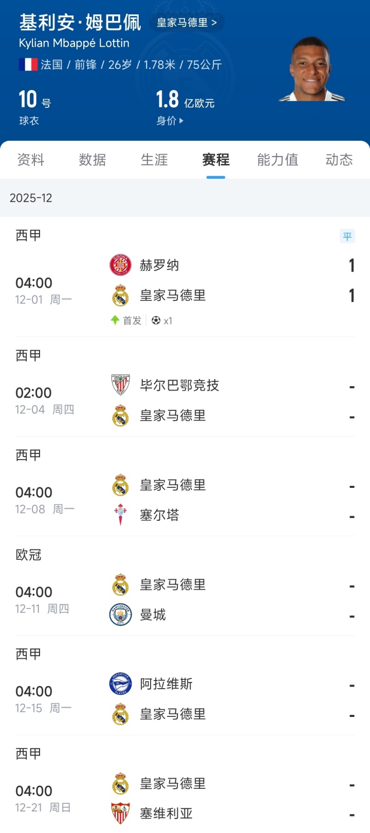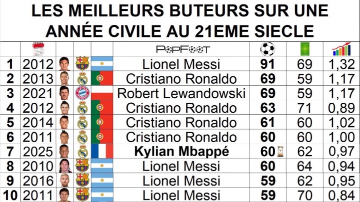 足球比分网12月02日讯 2025年接近尾声,皇马前锋姆巴佩已经在本年度打进了60粒进球,在21世纪自然年进球榜可以排到并列第6位。 12月份皇马还剩下5场比赛可踢,姆巴佩有机会冲击C罗和莱万的年度69球,梅西在2012年的91球依旧难以企及。 21世纪五大联赛球员自然年射手榜: 1、梅西 91球(2012年) 2、C罗 69球(2013年) =莱万 69球(2021年) 4、C罗 63球(2012年) 5、C罗 61球(2014年) 6、姆巴佩 60球(2025年,还剩5场比赛) =C罗 60球(2011年) =梅西 60球(2010年) 9、梅西 59球(2016年) =梅西 59球(2011年)