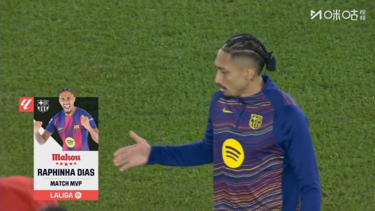 单刀球扳平比分!西甲官方:拉菲尼亚当选巴萨