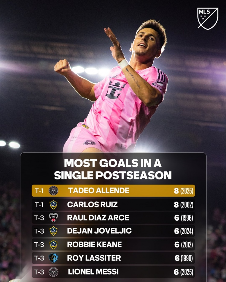 美职联历史单届季后赛进球榜:阿连德8球居首,