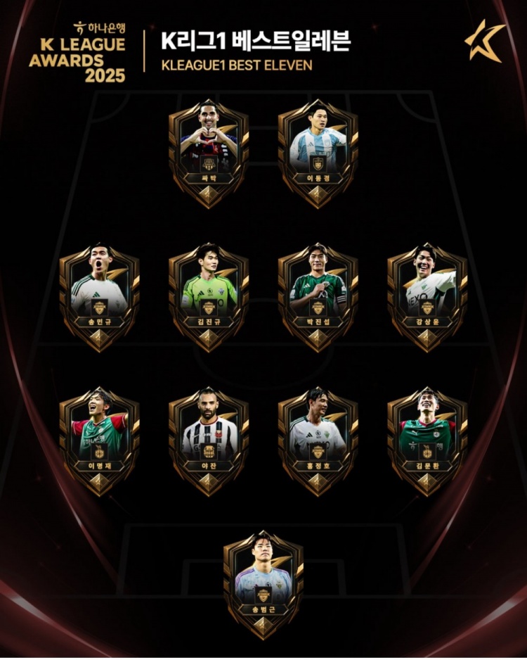 足球比分网12月1日讯 2025赛季K1联赛于上周末落下帷幕,全北现代强势回归,提前5轮夺得联赛冠军,并成为第10支夺得K1冠军的球队。 今日K联赛官方公布了本赛季最佳球员、最佳教练、最佳青年球员奖项获得者以及最佳十一人阵。具体如下: 最佳球员:李东炅(蔚山HD) 最佳教练:波耶特(全北现代)