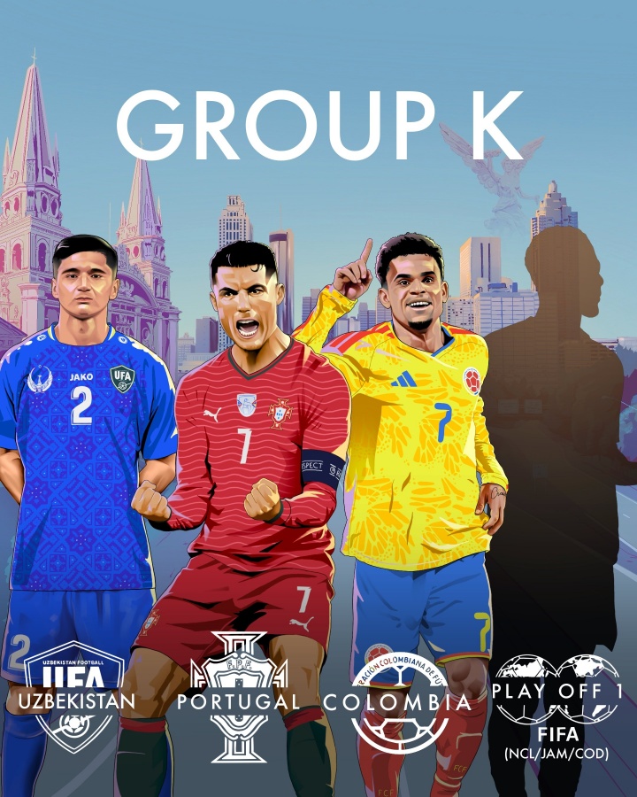 世界杯K组:葡萄牙、洲际附加赛1、乌兹别克斯坦、哥伦比亚