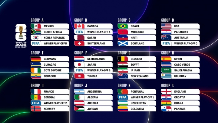 2026世界杯小组赛抽签已经结束,法国、塞内加尔、洲际附加赛球队2组出线球队(玻利维亚/苏里南vs伊拉克)、挪威组成死亡之组! 已连续两届缺席!意大利若晋级世界杯将分入瑞士、加拿大所在B组