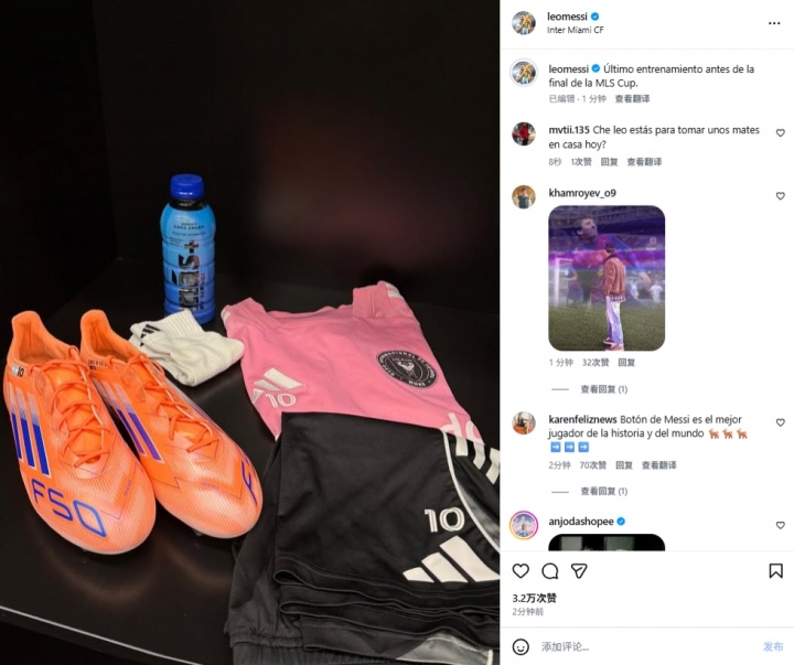 决赛前夕!梅西小晒自己的训练装备:美职联总