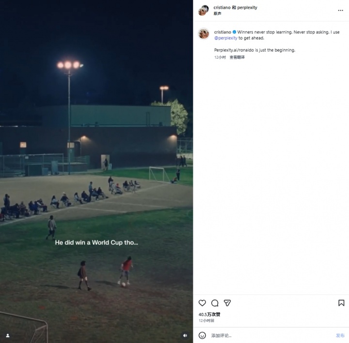C罗投资AI宣传片引热议:开头提及与C罗相比的人