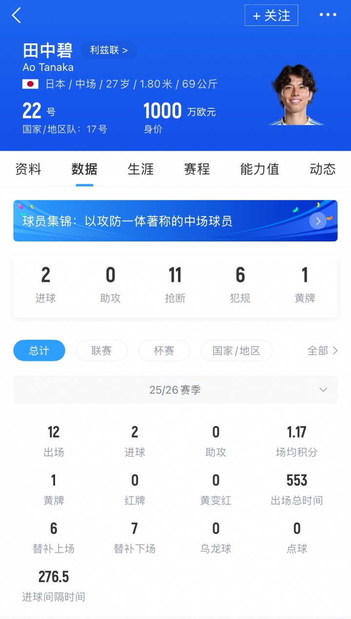 本轮对利物浦田中碧的进球 |