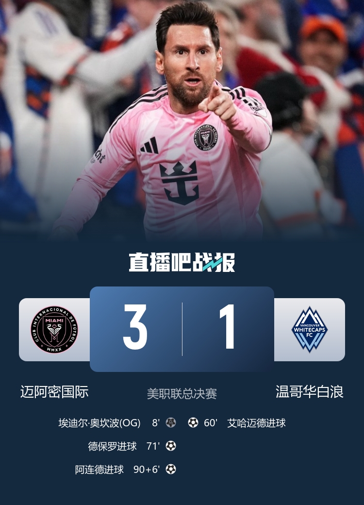 迈阿密国际3-1击败温哥华白浪!队史首夺美职联总冠军!梅西夺得个人生涯第47座冠军! 冠军收割机!38岁梅西首夺美职联总冠军,个人生涯第47冠 |