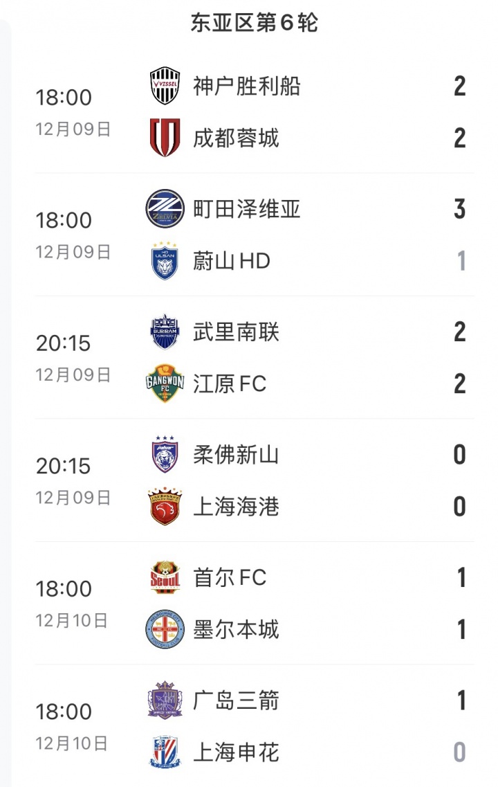 中超球队本轮亚冠赛场表现:海港、蓉城战平, 时间: 2025-12-15 来源: 网络 作者: admin 足球比分网12月11日讯 亚冠二级小组赛E组第6轮,北京国安1-2输给麦克阿瑟FC。本轮中超球队亚冠赛场表现,海港、蓉城战平,国安、申花失利。 上一篇:武磊社媒:这一年我错过了比赛,但没错过自己 下一篇:比赛日Vlog:一起回顾亚冠精英联赛柔佛DT0比0上海