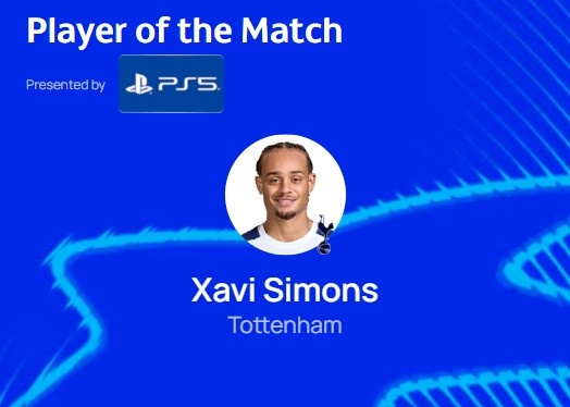 足球比分网12月10日讯 热刺在本轮欧冠3-0完胜布拉格斯拉维亚,哈维·西蒙斯造点+主罚命中,也在赛后被官方评为本场最佳球员。 欧足联技术观察小组表示:“西蒙斯通过积极反抢加强...