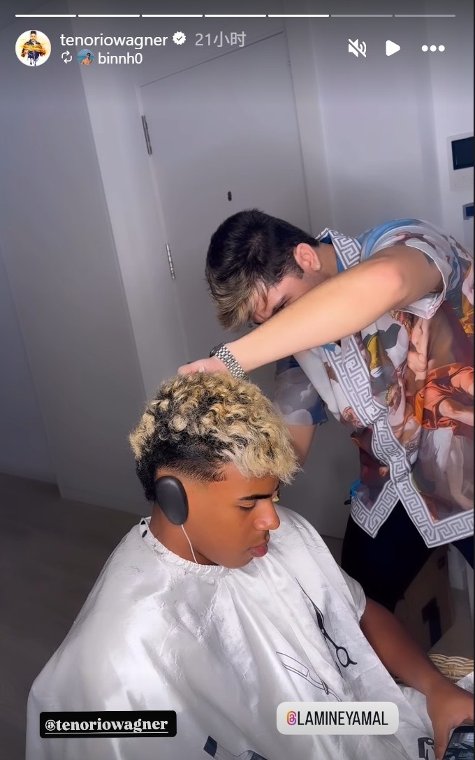 足球比分网10月26日讯 西班牙网红发型师Wagner Tenorio在今日通过社媒晒出动态,为亚马尔在国家德比前打理发型。 这位发型师近段时间一直在负责维护亚马尔的发型,定期为其进行修剪...