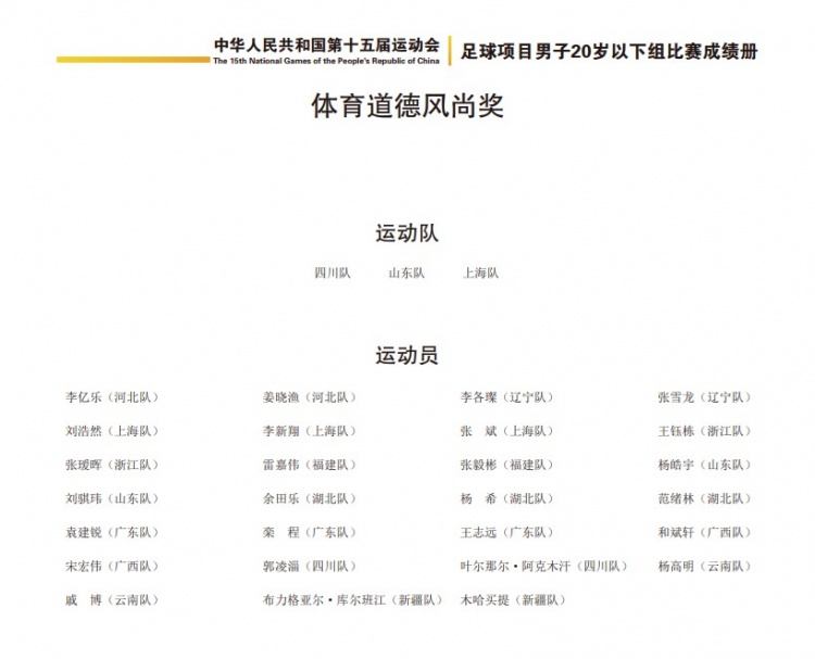足球比分网12月6日讯 根据十五运官网成绩册,王钰栋、杨皓宇、李新翔等人获得全运会体育道德风尚奖。 十五运会已经落下帷幕,根据赛事官网成绩册,四川U20男足、 山东U20男足、...