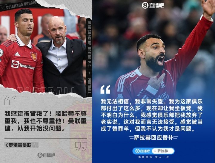 足球比分网12月08日讯 利物浦3-3利兹联赛后,萨拉赫炮轰利物浦引发轩然大波。众多外媒将之与3年前的C罗采访相提并论,称“萨拉赫复制了C罗的战术”。 2022年11月,C罗在接受摩根采访...