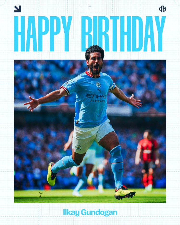 足球比分网10月24日讯 今天是京多安的35岁生日,老东家曼城为他送上祝福。 曼城官方社媒晒出京多安的生日海报,配文:“生日快乐,伊尔凯。” 京多安效力曼城期间出战358场比赛,...