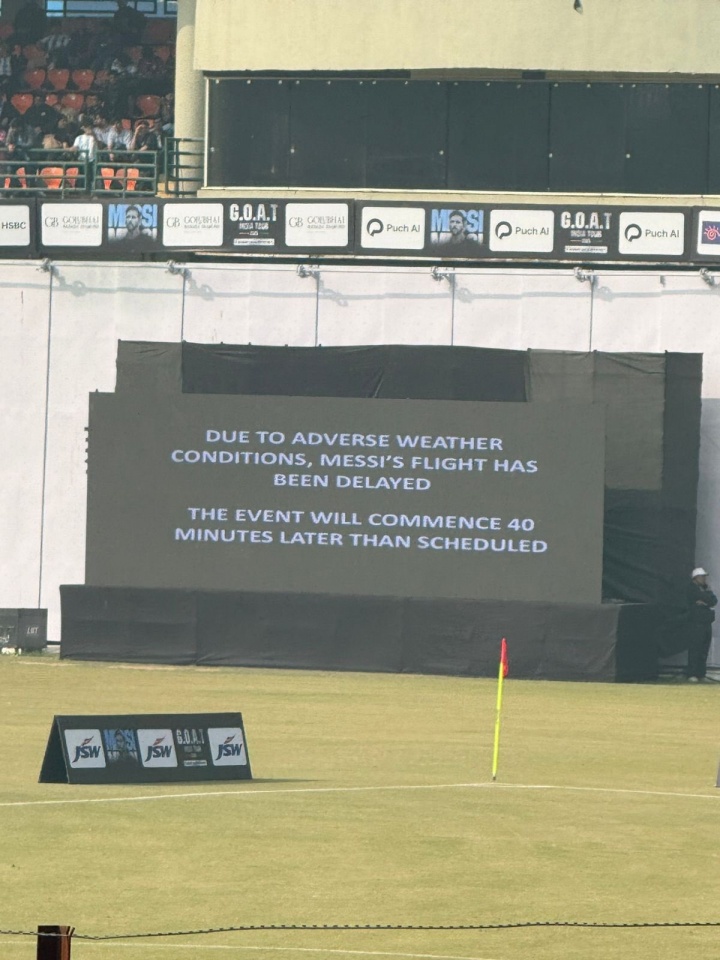 足球比分网12月15日讯 梅西印度行最后一站在体育场内的活动因梅西的航班延误而推迟四十分钟。 体育场内大屏幕写道,因天气状况不佳,梅西所乘的航班延误,本场活动将比原定时间...
